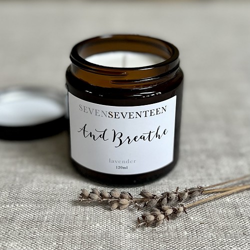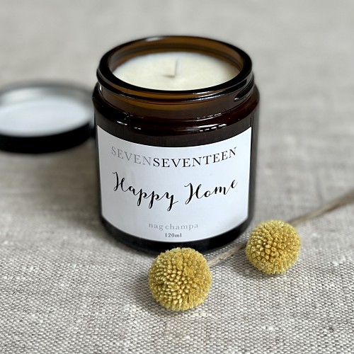 - A hand-poured plant-based candle, available in three scent options, presented in a recycled glass pharmacy jar by SevenSeventeen.