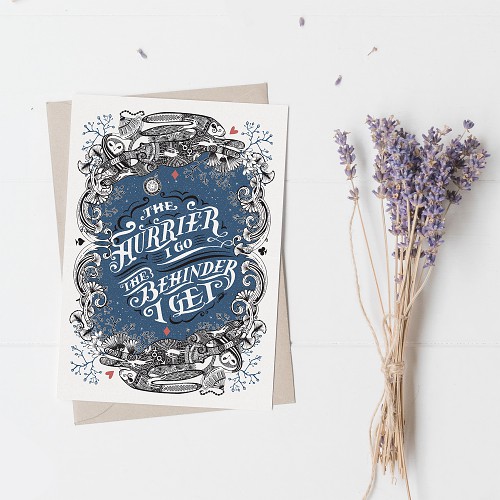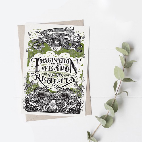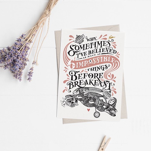 - A beautifully illustrated greetings card by artist Georgie Letters, printed on recycled card in a compostable presentation wallet. Choose from six card designs inspired by our Alice in Wonderland and Creature Comforts ranges, available in five colorways: Plum, Rose, Blue, Sage, and Teal. Specify your color preference in the comments section, or we’ll select one for you.