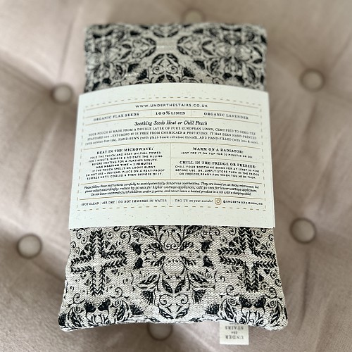 Introducing our Soothing Seeds Heat or Chill Pouch, designed to ease aches and pains, offer comfort, and aid sleep. Each pouch is crafted from double-layered pure European Linen certified to Oeko-Tex standard, featuring our unique botanical illustration hand-printed with solvent-free ink.