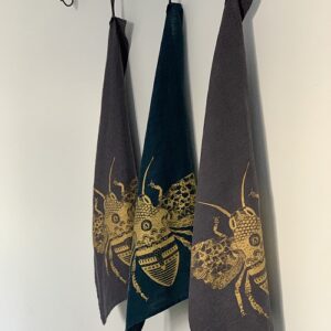 Gold Blossoming Bee Tea Towel